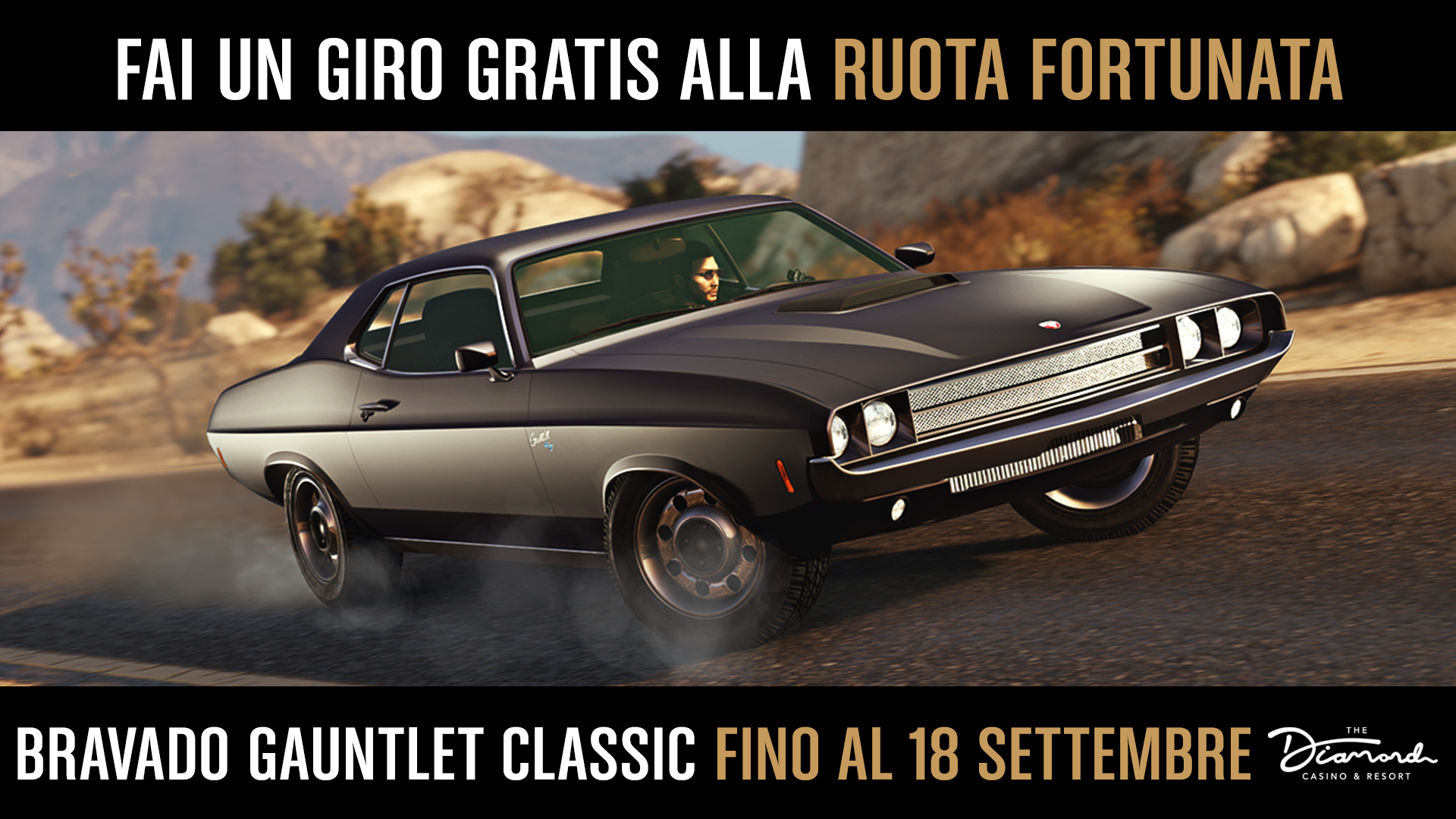 Fai un salto nell’atrio del Casinò e Resort Diamond in GTA Online e fai una giro alla ruota fortunata per vincere GTA$, RP, capi d’abbigliamento e molto altro. Il primo premio di questa settimana è l’audace e sfrontata Bravado Gauntlet Classic, un omaggio ai tempi in cui le auto e le birre migliori erano prodotte entrambe in America.