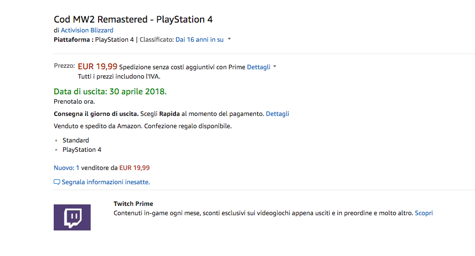 In queste ultime ore, Amazon Italia ha aggiunto (e poi rimosso) nei propri listini Call of Duty: Modern Warfare 2 Remastered.