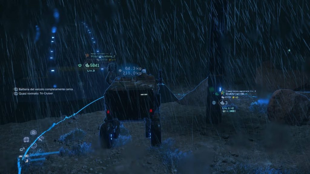 Il risultato è, quindi, di un gameplay molto più rifinito. La serie di consumabili disponibili nel corso della storia, aumentando l’apprezzamento dei vari avamposti attraverso ordini standard e secondari, permette la perfetta fusione tra elementi sci-fi e il mondo post-apocalittico. Se l’Islanda è stata la nazione che ha liberamente ispirato l’ambiente, nel nuovo titolo, pur ritrovandoci in Australia, ritroviamo sicuramente quegli elementi, ma, anche in questo caso, con aggiunte e un ambiente molto più vivo. Non mancheranno acquazzoni, scosse di terremoto, tempeste di neve, incendi, valanghe. La natura è viva e l’inserimento della fauna ne rimarca ancor di più questa peculiarità. Graficamente siamo probabilmente a un livello mai raggiunto su console. Death Stranding 2 On The Beach ha il pregio di collocarsi in una linea temporale che segnerà un pre Death Stranding 2 e un post. L’amore per i dettagli, i giochi di luce, le espressioni dei volti. Medaglia al valore per la telecamera, tra i top del genere e mai fuori sincrono, soprattutto nelle fasi concitate di atterramento dove potrebbe mostrare tutti i limiti, ma non lo fa.