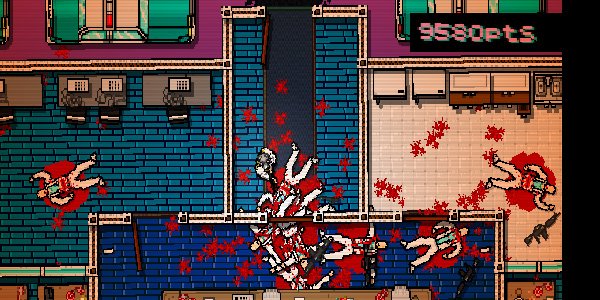 Ogni livello di Hotline Miami è architettato in edifici con diverse stanze, diversi piani, tutti pieni zeppi di gente armata da uccidere. La visuale è a volo d’uccello, l’inquadratura oscilla leggermente per un dondolio che danza con la psichedelia della soundtrack. Ci sposteremo con WASD e mouse, quest’ultimo utilizzato -in maniera non proprio impeccabilissimissima- per direzionare i nostri attacchi. Due soli tasti: sinistro per attaccare, destro per lanciare le armi contro gli avversari. La mente dello psicopatico che impersoneremo non è talmente obnubilata da non capire che ogni vita che prendiamo è frutto di follia omicida, ma sopratutto di strategia.